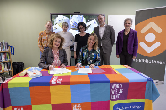 Sinds 2018 werken we samen met de bibliotheken in onze regio om de leesvaardigheid en het plezier in lezen van studenten te bevorderen. Vrijdag ondertekenden Annemieke van Ede, directeur campus Haarlem, en Roxane van den Acker, directeur de Bibliotheek Zuid-Kennemerland, in aanwezigheid van wethouder Bas van Leeuwen de verlenging van de samenwerking t/m schooljaar 2026-2027.