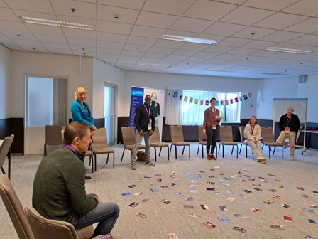 Daarop deed Frank een beroep op de deelnemers om in kleinere groepjes advies te geven: wat zijn logische vervolgstappen voor het MyTalent-programma, met welke partners moeten we in zee, waar moeten we rekening mee houden? Doordat de deelnemers daarover in kleine groepjes met elkaar in gesprek gingen, leverde dat niet alleen zeer bruikbare adviezen op voor Door en Frank, maar wisselden de deelnemers ook ervaringen en tips met elkaar uit die zij weer konden meenemen naar hun eigen organisatie. Afspraken voor vervolggesprekken zijn al in de maak.