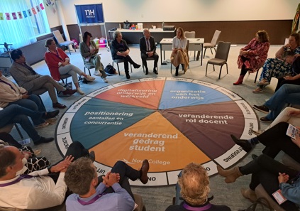 Aan de hand daarvan gingen de deelnemers met elkaar in gesprek over de uitdagingen die je daarin het hoofd moet bieden. De eisen gaan op korte termijn veranderen, maar dit is een verandering die tijd kost en verankering vraagt. Ook is noodzakelijk dat alle niveaus van de organisatie het belang inzien en dat docenten hiervoor worden gefaciliteerd. Hoe kun je slimme verbindingen leggen, de nieuwe eisen combineren met wat we nu al doen en in huis hebben? Hoe kom je van de waan van de dag tot het echt doorzetten van de lijn die je hebt ingezet? Hoe deel (en beoordeel) je materiaal dat door docenten is ontwikkeld, en dat snel veroudert? En hoe betrek je studenten in dit proces?